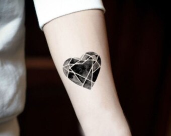 Set Of 3 Geometry Black Heart Temporary Tattoo Vintage Fake Etsy